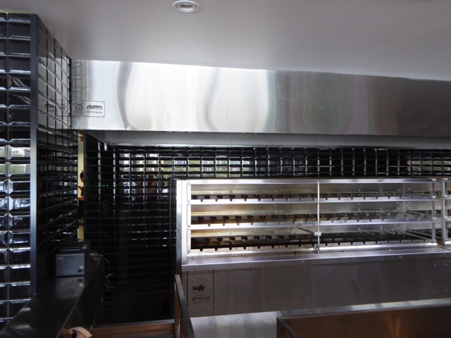 AOM Australia’s signature HCFO exhaust hood was the natural choice for this project. HCFO hoods are custom designed and contain all the filtration and odour mitigation systems in the hood. This means the particles, smoke and odour are caught and stopped at the hood and go no further. Easily serviceable as the electrostatic precipitator cells sit just behind the honey comb filters. It is only a matter of opening a panel and sliding the cells out to be replaced with clean ones. Due to its custom build AOM Australia was able to design a hood that had clean lines in stainless steel as required by the aesthetic design of the restaurant.