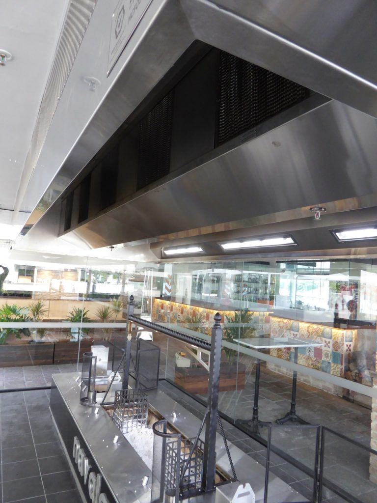 When Navala Churrascaria was in design phase there was a vision to create a glass encased solid fuel Brazilian BBQ cooking station at the front of the restaurant. This design was going to be the focal piece of the restaurant offering a show for restaurant goers and passersby alike. From an exhaust point of view it was a complete nightmare!