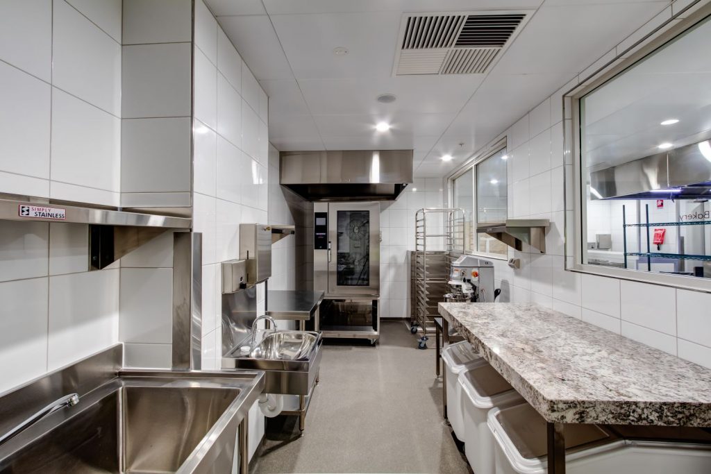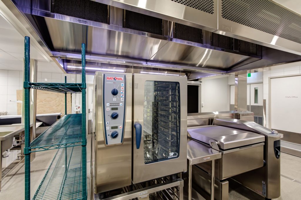 The main kitchen hoods were customised to specific interior design specifications which required manufacturing to use black stainless steel panels instead of the standard colour stainless steel. Another hood required a rusted coated finish and AOM provided the kitchen exhaust hood equipped with hanging frames to hang the supplied panels.